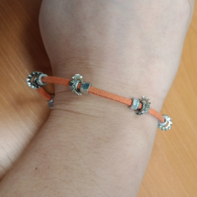 Fabrication de bracelets unisexe à partir de matériaux et produits recyclés : fil de cuir, écrous en inox, rondelles...